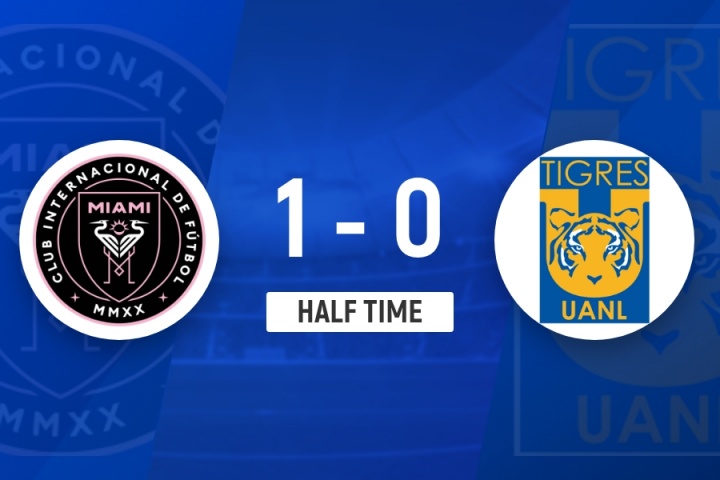 上半场补时4分钟,迈阿密国际1-0老虎大学。